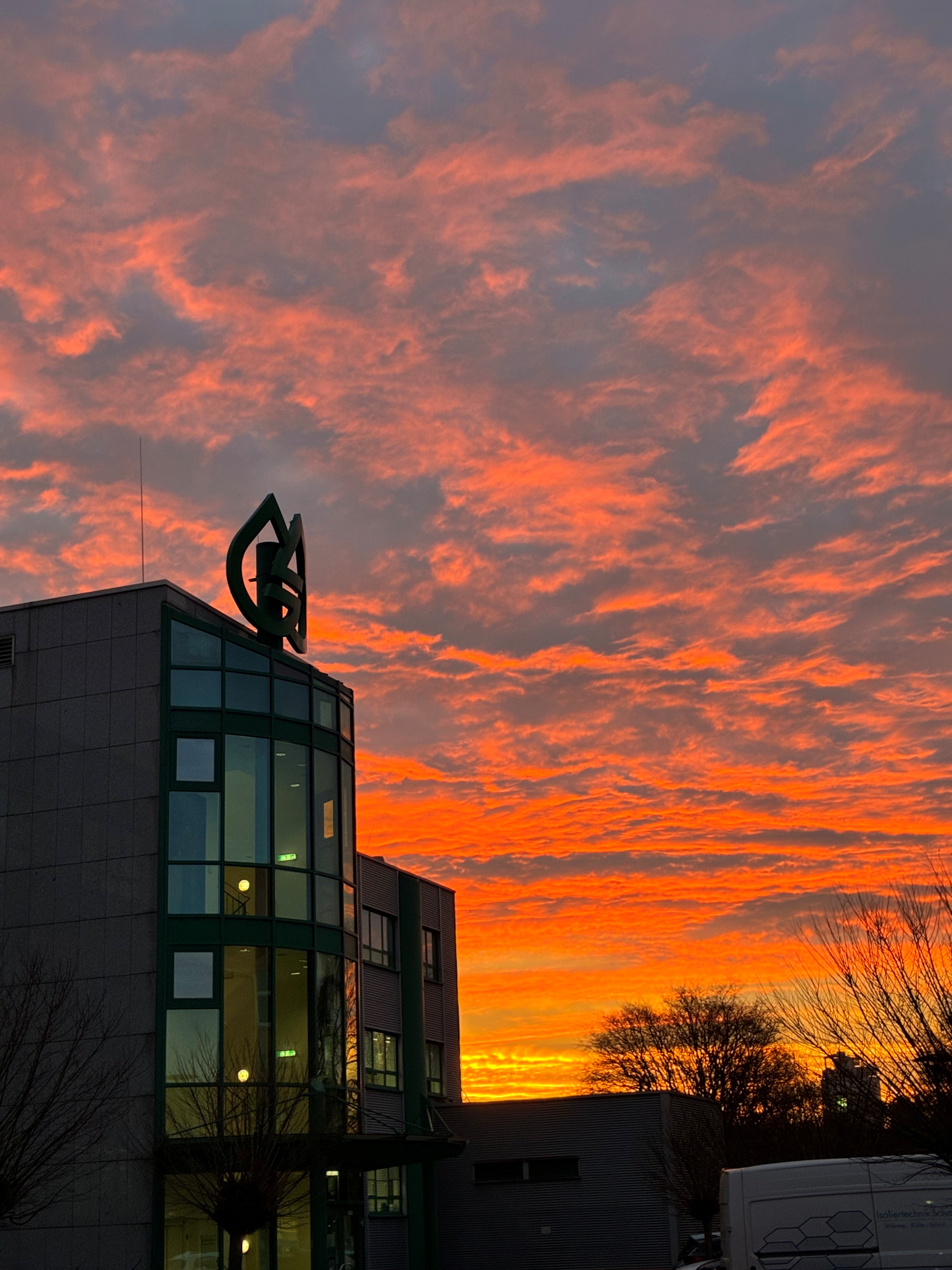 This morning, the sun rising over the Rhine in Uerdingen reminded us how beautiful our location is – right on the waterfront with a view of the Uerdingen Rhine bridge. Many of our colleagues get to enjoy this view every day – a real motivational boost in the morning!